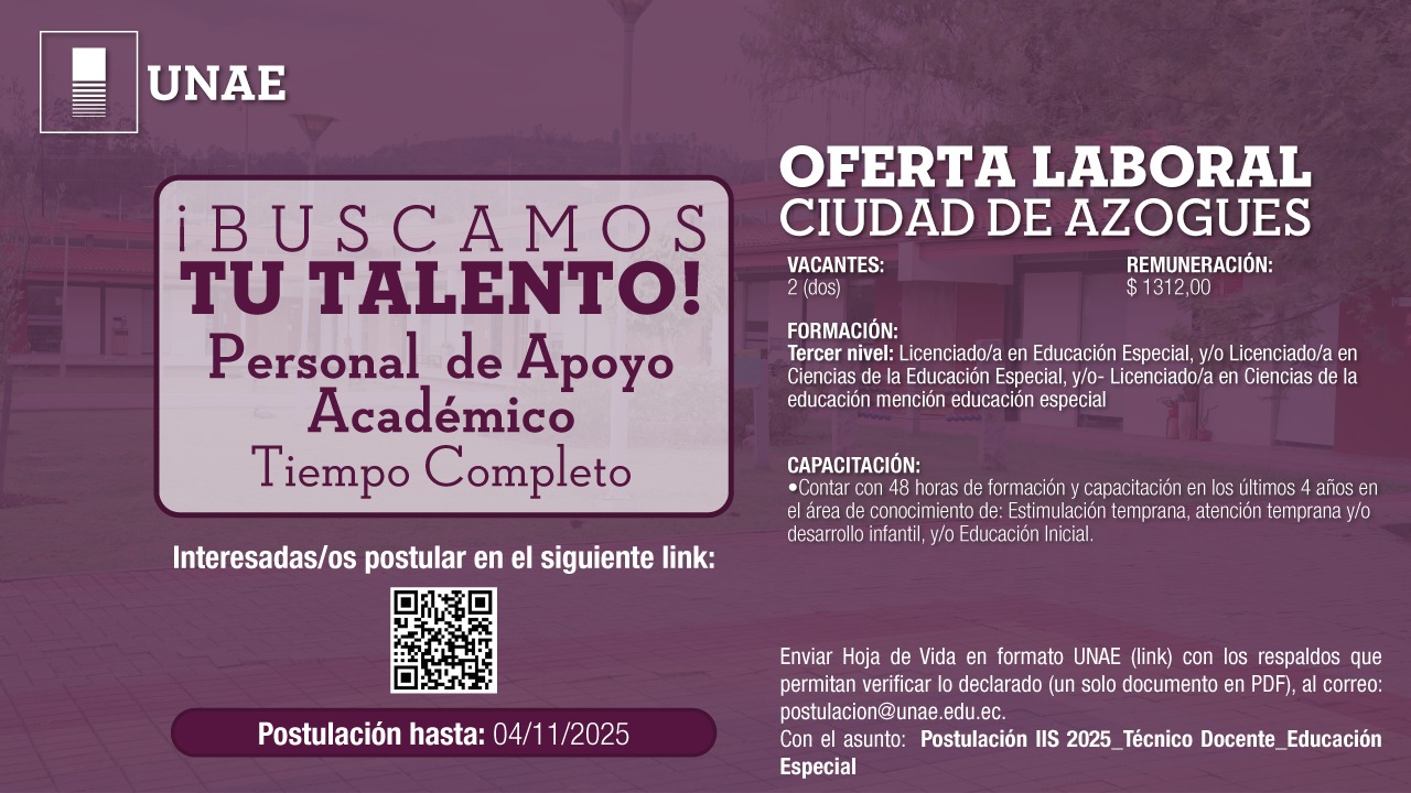 . La Universidad Nacional de Educación requiere contratar Personal de Apoyo Académico Tiempo Completo para