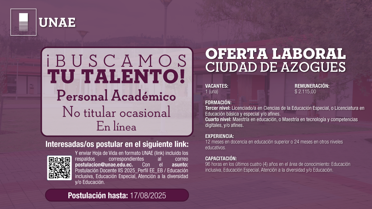 . La Universidad Nacional de Educación requiere contratar Personal de Apoyo Académico Enseñanza de