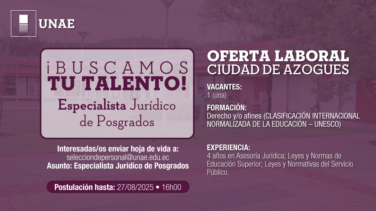 . La Universidad Nacional de Educación requiere contratar Especialista Jurídico de Posgrados para la