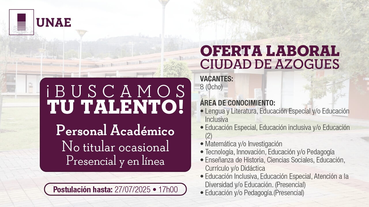 . Estimada comunidad universitaria, . La Universidad Nacional de Educación (UNAE), en el marco del
