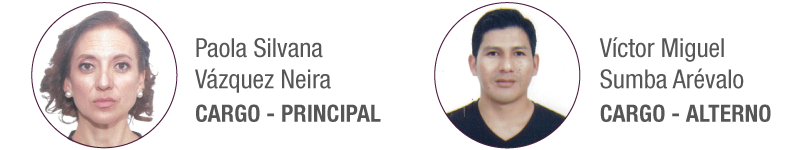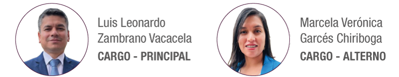 Luis Leonardo Zambrano Vacacela – Principal / Marcela Verónica Garcés Chiriboga – Alterno