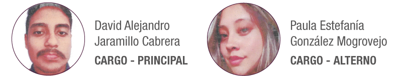 David Alejandro Jaramillo Cabrera – Principal / Paula Estefanía González Mogrovejo – Alterno