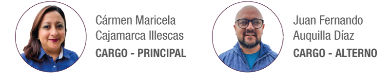 Cármen Maricela Cajamarca Illescas – Principal / Juan Fernando Auquilla Díaz – Alterno