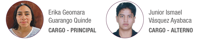 Erika Geomara Guarango Quinde – Principal / Junior Ismael Vásquez Ayabaca – Alterno