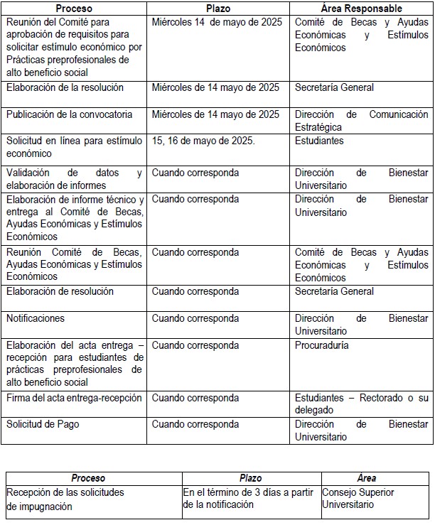 • Artículo 2.- Aprobar el siguiente cronograma para el proceso de otorgamiento de estímulos económicos para prácticas preprofesionales de alto beneficio social IS2025, de conformidad a la siguiente tabla: