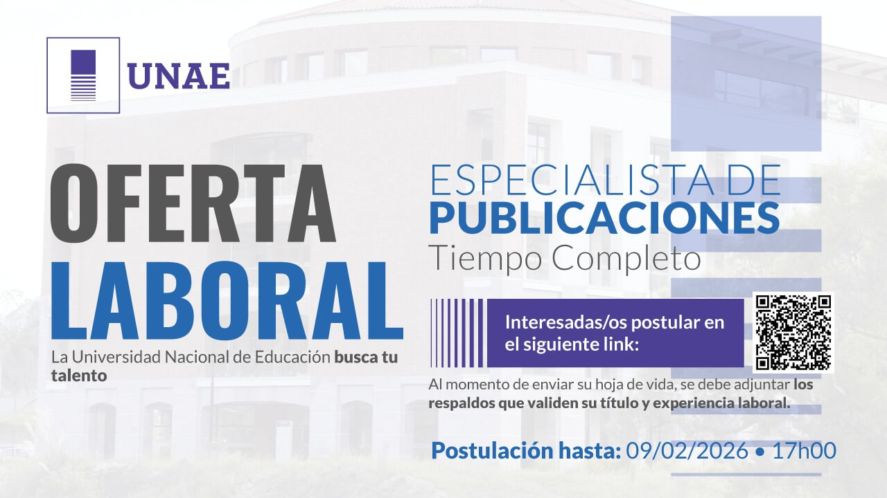 . La Universidad Nacional de Educación requiere contratar un/una Espacialista de Publicaciones a tiempo