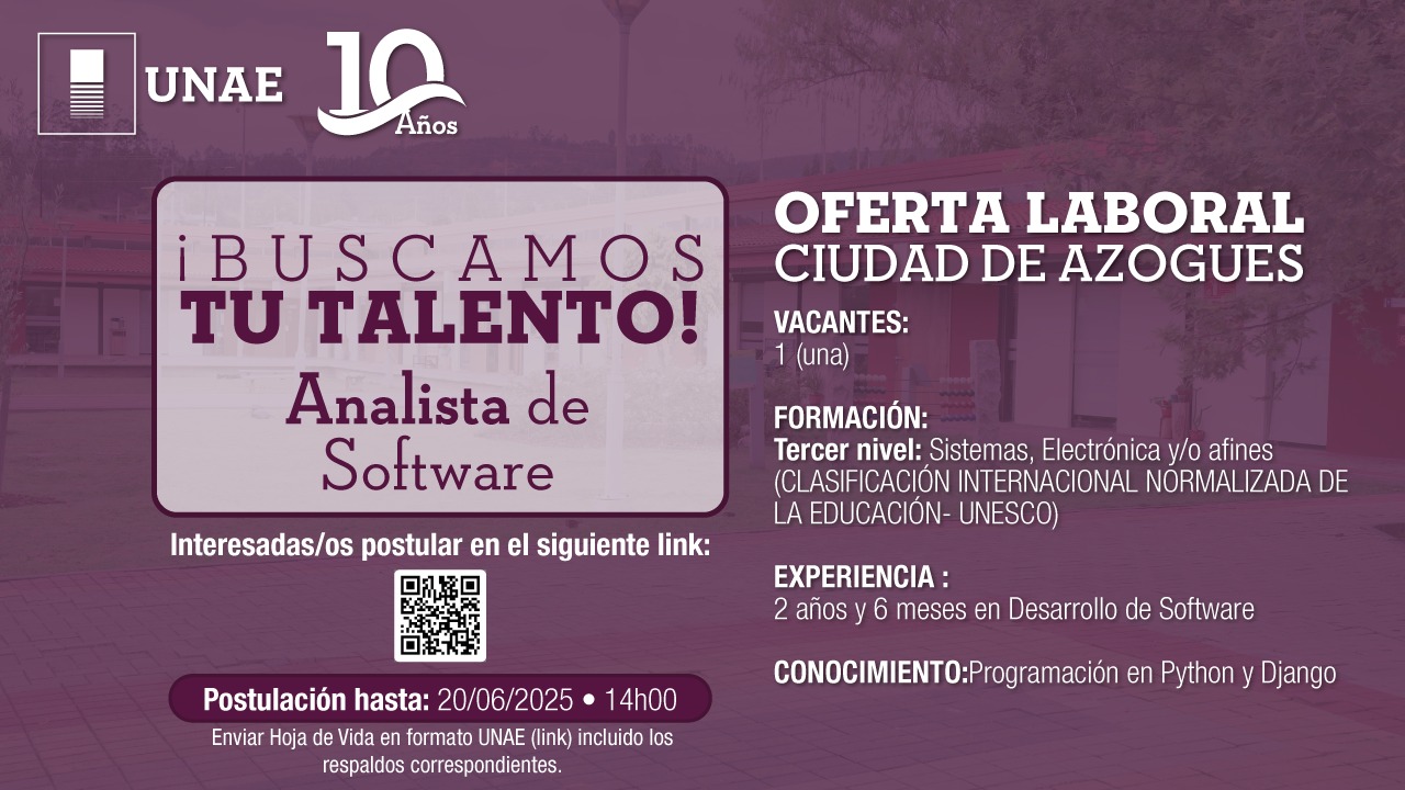 La Universidad Nacional de Educación requiere contratar un/una Analista de Software para la ciudad de Azogues.