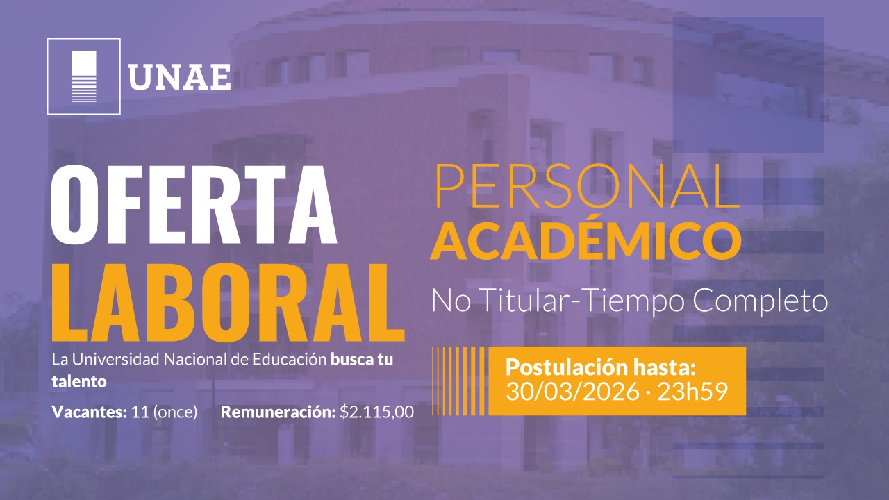 La Universidad Nacional de Educación requiere contratar Personal Académico No titular-Tiempo Completo para la ciudad de Azogues.